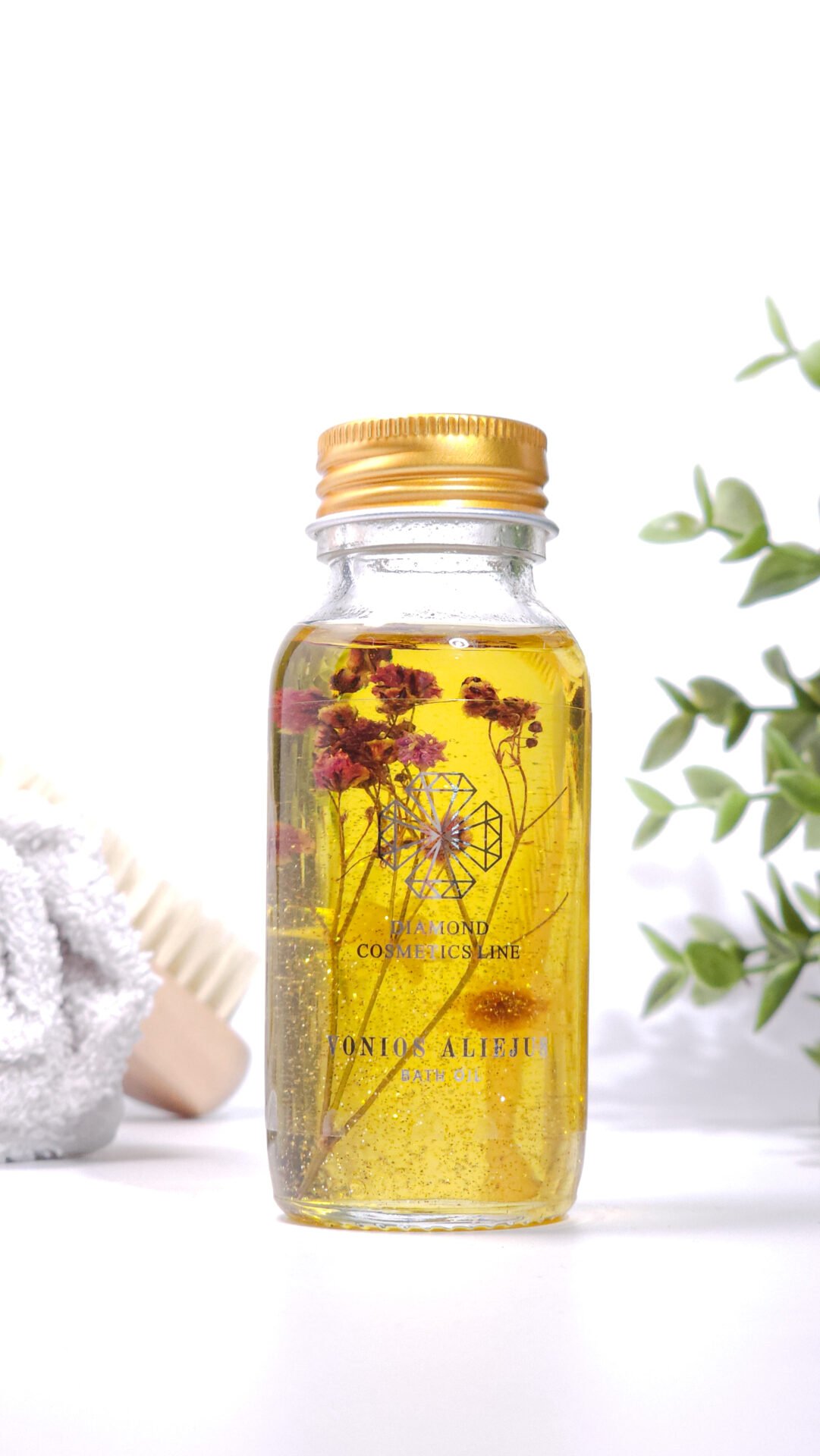 • Švelnaus gėlių aromato natūralus simondsijų aliejus su žėručiais (pilamas į vonią, intensyviam odą drėkinančiam poveikiui)