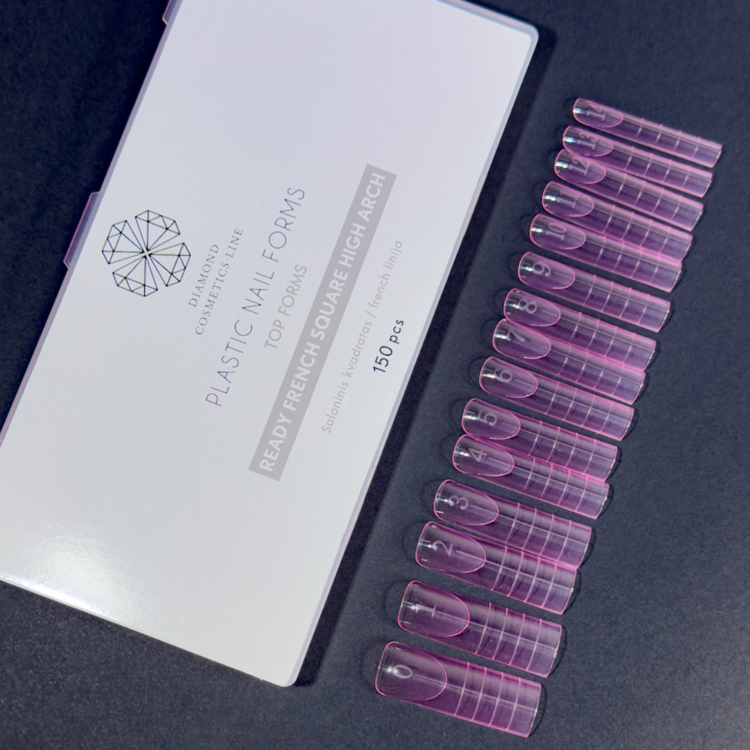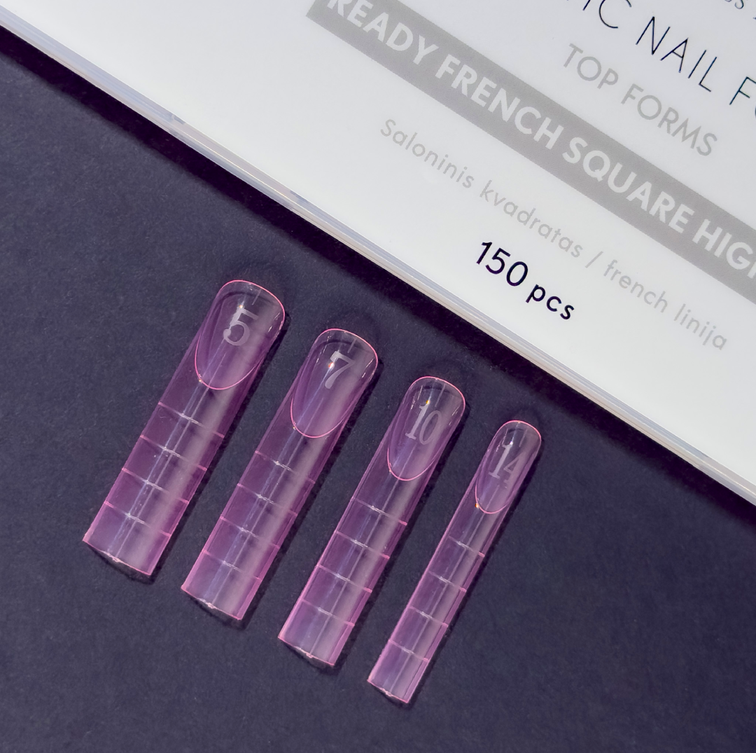 Plastikinės formelės nagų priauginimui „TOP FORMS READY FRENCH SQUARE HIGH ARCH” 150 vnt.