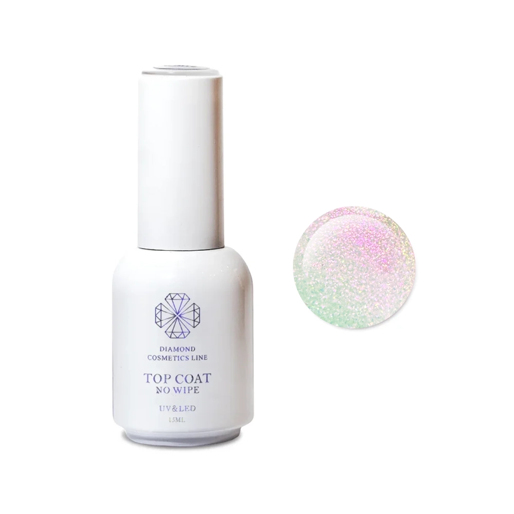 Viršutinis gelinio lako sluoksnis (top coat) „Pink shimmer top coat“, 15 ml
